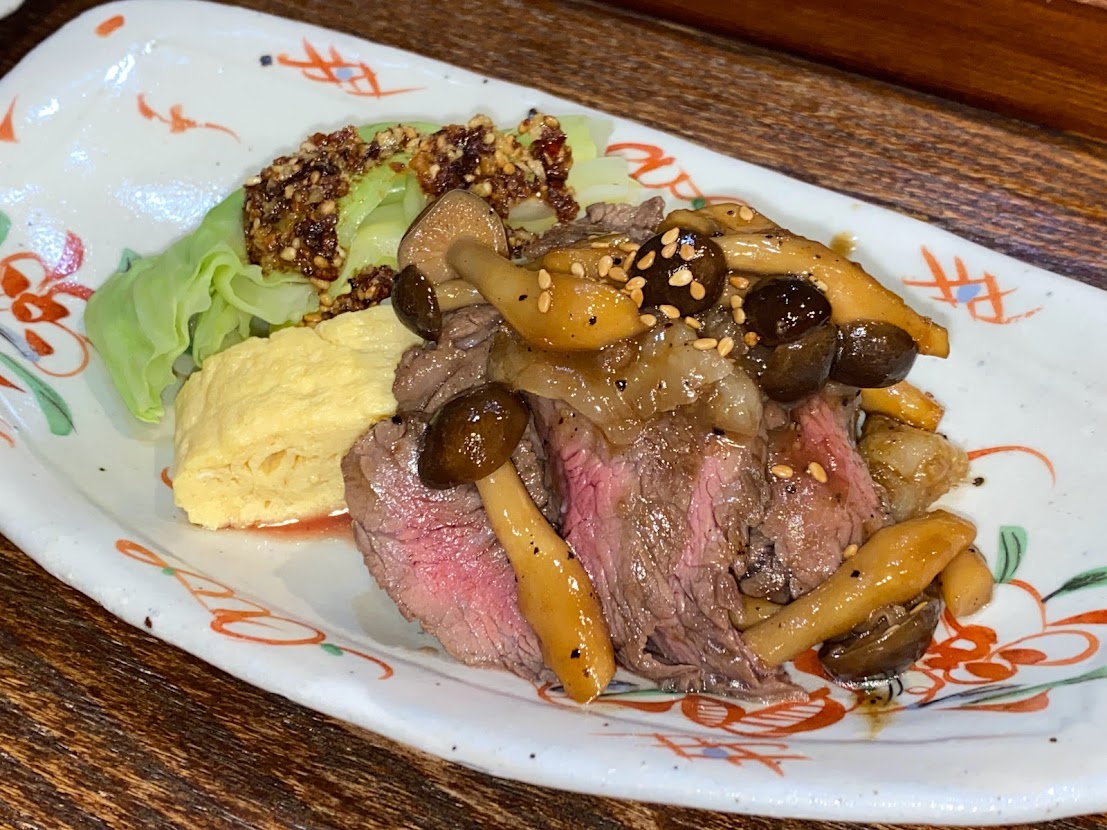 小鉢 造り サラダ 茶わん蒸し ステーキ(160g) 御飯 赤出汁 香の物
